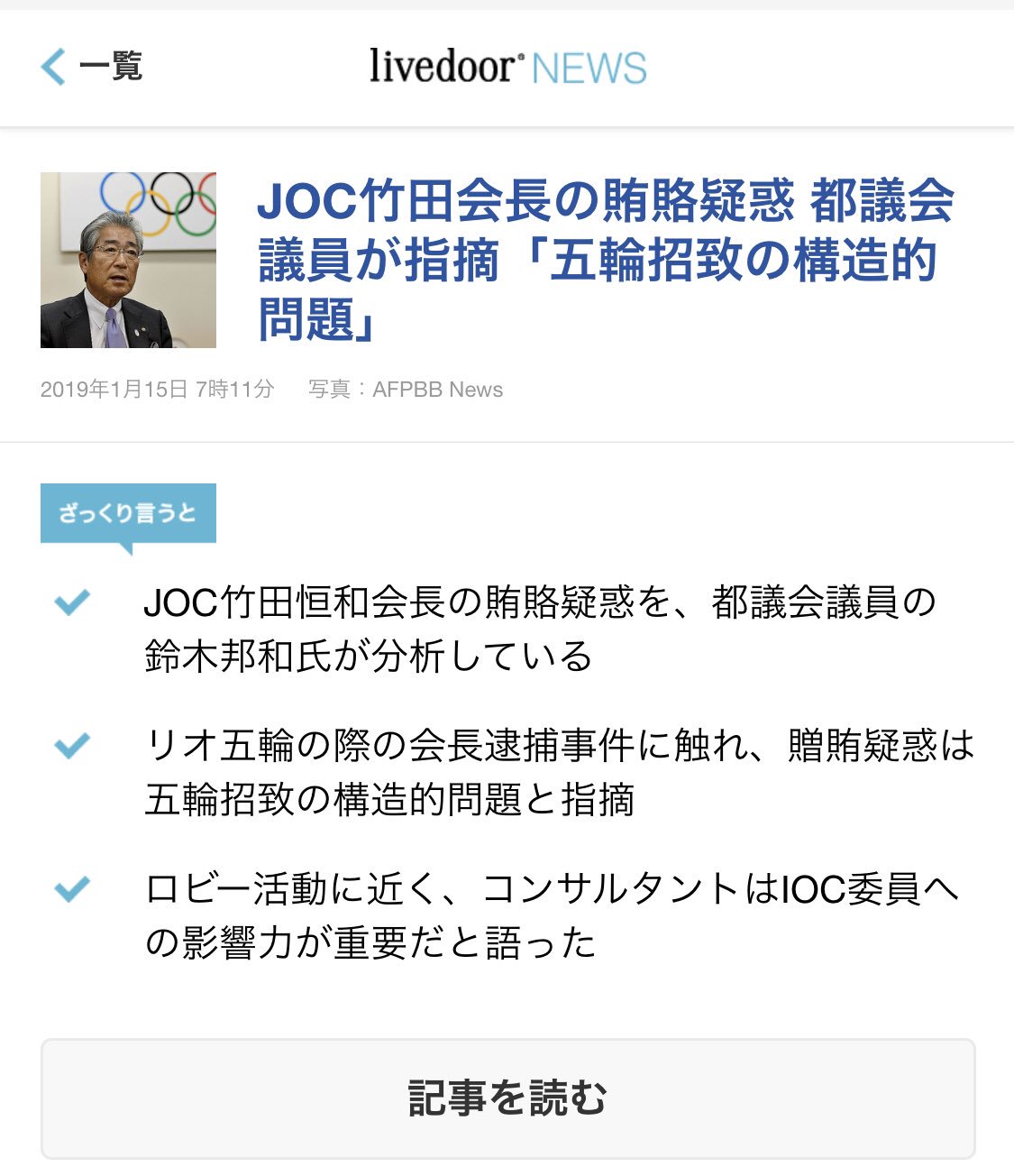 鈴木 邦和 On Twitter 昨日公開したjoc会長の贈賄容疑に関するブログですが ライブドアニュースに掲載されてblogosで14万以上のpvになりました 記事後半には五輪経費の問題も書いたので 多くの方々に知って頂けて嬉しいです これを機にブログもっと頑張ろう